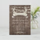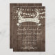 Rústico estilo de ciervo canta el diseño de "La caza se acabó" con una cadena de luces sobre un telón de fondo de madera de granero, ideal para un boda al aire libre por la noche, boda de granero, boda de otoño, boda de campo, boda de vaquero.....Por favor, personalícelo con su propio texto en función de la ocasión o haga clic en el botón "Personalizar" para ir a la herramienta de diseño donde puede agregar texto, cambiar el tipo de letra, el tamaño del texto, el color del texto, el posicionamiento del texto y más. Para preguntas y solicitudes de personalizados, haga clic en "contacto" y déjenos un mensaje. **Las plantillas coordinadas se pueden encontrar en la colección que se muestra a continuación o pegando esta URL en su navegador: https://www.zazzle.com/collections/rustic_antlers_hunt_is_over_wedding_collection_1-119776334247121435?rf=238919973384052768&CMPN=share_dclit&lang=en&social=true
