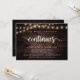 La celebración continúa, Tarjeta de anuncio de boda / invitación, en diseño de luces de cuerda de madera de granja rústica. Esto es perfecto para la recepción de su boda y la fiesta de celebración después de la boda. Agregue sus detalles en letra / letra coincidente.
