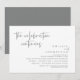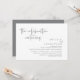 Tarjeta de invitación de boda íntima con tema de escritura gris oscuro contemporáneo moderno (La celebración continúa). Es perfecta para su recepción de boda íntima / fiesta de celebración después de la boda. Agregue sus detalles en fuente / letra coincidente.