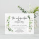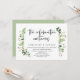 Tarjeta de invitación de boda con tema de hojas verdes de jardín de verano, guión negro moderno (La celebración continúa). Es perfecta para la recepción de su boda / fiesta de celebración después de la boda. Agregue sus datos en fuente / letra negra a juego.