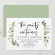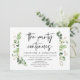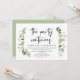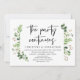 Tarjeta de invitación de boda con tema de hojas verdes de jardín de verano, escritura negra moderna (la fiesta continúa). Es perfecta para la recepción de boda / fiesta de celebración después de la boda. Agregue sus detalles en fuente / letra negra a juego.