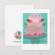 Grande y ornamentado, esta pieza presenta un pastel de tres pisos imponente colocado contra un rico fondo de color teal. El contraste entre el fondo profundo y las rosas rosadas exuberantes y realistas crea una profundidad visual impresionante.