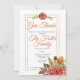 Perfecto para las celebraciones del otoño. Diseño rústico y floral para cenas de acción de gracias, bodas y fiestas de otoño. Las invitaciones y las tarjetas están disponibles en una selección de opciones de forma (bordes redondeados, vieiras, etc.) y en una selección de texturas de papel. Los estilos de fuente, el color y el tamaño son personalizables. Encontrará otros diseños con muchos productos de coordinación en nuestra tienda, incluyendo invitaciones, guardar la fecha y las tarjetas rsvp, etiquetas de agradecimiento y más.