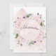 Una invitación al bautismo floral rosa bonito. El diseño es una corona floral rosa con un texto de color plateado que se cambia fácilmente a tu información. Elija entre una gama de tipos de papel. El reverso tiene un patrón floral rosado y una cruz con su propio nombre personalizado.