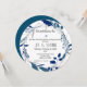 Un diseño elegante con el versículo de la escritura: Dos se convertirán en uno | Diseño de vegetación floral azul: Elegancia simple. Puede personalizar el uso de la herramienta de diseño (botón de edición) para realizar cambios en el texto, el tipo de letra y los colores. Grabado/manuscrito negro. Invitación redonda única con una corona floral.