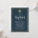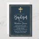 Elegante estilo de estilo moderno cruz de oro de la marina azul bautismo Invitación con (falso) marco de oro.