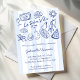 La dolce vita blue stripes hand drawn Italian bridal shower invitation cards template, la dolce vita invitation cards, Italian bridal shower invitations, vintage blue stripes bridal shower invitations