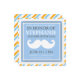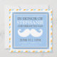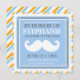 Un niño personalizado invita a presentar un gran diseño de bigote y rayas diagonales en colores azul y naranja en combinación con carbón vegetal