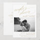 La invitación a la ducha de esta moderna pareja de fotos de oro incluye una foto de los futuros recién casados, acompañados de un elegante guión romántico de oro.