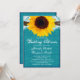 Plantilla verde azulada de la invitación de la ducha de la boda del par rústico del país del girasol. Esta invitación única de la ducha del boda ofrece el fondo azul apenado de la aguamarina verde azulada a ambos lados de la invitación. La invitación tiene un adorno impreso del cordón y adorno de la guita. Encima de eso está un girasol, un frente y un centro amarillos brillantes en la cima de la invitación. El cordón y la guita son apenas diseños impresos. No es cordón o guita real.