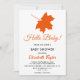 Esta elegante ducha de bebé de otoño es perfecta para una moderna ducha de bebé de otoño. El diseño es sencillo, con hojas de otoño rojas y una tipografía elegante en negro y rojo sobre un fondo blanco.