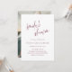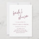 Elegante estilo tipográfico invitación a la ducha de novias con un diseño sencillo y minimalista con una combinación de un clásico tipo de letra serif y una moderna caligrafía escrita a mano. La parte de atrás tiene tu foto favorita. El tema de color es frambuesa / borgoña y puede cambiarse en la herramienta de edición de diseño.
