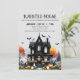 Invite a sus amigos, familia o vecinos a un evento anual de casa embrujada con esta espeluznante y elegante invitación, perfecta para marcar el tono de una noche de emociones de Halloween. Con un fondo gris claro tanto en la parte delantera como en la trasera, la parte trasera también dispone de rayas negras para un toque de elegancia sobria. El diseño muestra un sencillo pero llamativo esquema de color negro, naranja y blanco, con una mezcla de fuentes ornamentales y serif. En la parte inferior, se respira la vida de una casa vintage negra con brotes de color naranjas de calabazas, lámparas jack-o’ y árboles espeluznantes, mientras que fantasmas y murciélagos adorables añaden un toque lúdico. La fuente angustiada agrega un ambiente vintage y antiguo, haciendo que sea perfecto para tu casa embrujada o incluso una fiesta de Halloween si lo prefieres. Puede personalizar de la apariencia cambiando el fondo o los colores de rayas para que se ajusten a su tema. El barrio espantado o la Halloween de negocios embrujaron la invitación a la casa y los fantasmas de las bandas de los murciélagos. Disponible en forma de invitación impresa, o como una invitación digital descargable que puede enviar por correo electrónico o que ha impreso localmente.