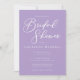Esta encantadora ducha de lilac bridal ofrece una hermosa tipografía blanca sobre un suave fondo violeta para un fiesta de té de primavera por la tarde. Los colores pastel de Lavender son una delicada elección para una elegante ocasión en el jardín.