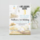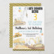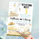 Esta encantadora invitación de cumpleaños incluye camiones de construcción de acuarelas y globos de colores.