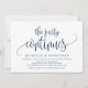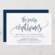 Esta tarjeta de invitación con diseño de caligrafía moderna (La fiesta continúa) es perfecta para la celebración o anuncio de su boda íntima. Agregue sus detalles en fuente / letra azul marino a juego.