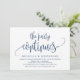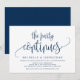 Esta tarjeta de invitación con diseño de caligrafía moderna (La fiesta continúa) es perfecta para la celebración de su boda secreta o fiesta de anuncio. Agregue sus detalles en fuente / letra azul marino a juego.