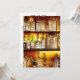 Invitación de fiesta de arte de bar con una representación artística de botellas de licor y licores dispuestas en estantes para el bar de un establecimiento. Acuarela digital creada con software de generación de IA. Perfecto para fiestas de cumpleaños número 21, despedidas de soltero y más. Personalice con los detalles del evento.