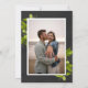 Celebra tu compromiso con esta invitación de foto con tema de cervecería "Love Is Brewing", que presenta un fondo de pizarra negra, lúpulo y vegetación, y detalles de cerveza dorada. La parte trasera incluye espacio para tu foto favorita, agregando un toque personal a tu divertida y casual fiesta de compromiso en la cervecería. Perfecta para parejas que planean una celebración relajada y moderna. Personaliza con los detalles de tu evento y foto, y agrega artículos coincidentes de la suite para completar el look de tu fiesta de compromiso en la cervecería.
