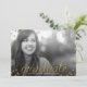 Una invitación moderna de la graduación que ofrece una foto de su graduado con las letras y el confeti de la mirada del purpurina del oro. La parte posterior se puede utilizar como invitación a una fiesta de graduación, o despejar para utilizar apenas como invitación.