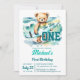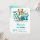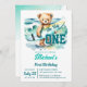 El gran oso de peluche de cumpleaños de surf con una tabla de surf y una plantilla de invitación de olas descarga instantánea. Agradable para los cumpleaños temáticos de la playa de verano.