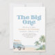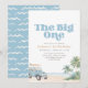 Invita a amigos y familiares a celebrar el primer cumpleaños de tu pequeño con esta invitación temática de surf.