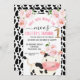 Cute tema de vaca o has escuchado la invitación de moos de primer cumpleaños para una niña. El diseño de esta invitación de cumpleaños del chica incluye una linda vaca blanca y negra, un audaz patrón de impresión de vacas y algunos encantadores rosas florales rosas. Este diseño también cuenta con un purpurina de oro falso extraíble, uno al fondo y delante de la invitación. Esta invitación es una forma muy agradable de invitar a los huéspedes a una fiesta de cumpleaños de una vaca, un corral, un chica con temática de jardín.
