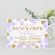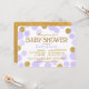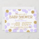 El purpurina y la lavanda del oro dispersaron diseño de tarjeta moderno de la invitación de la fiesta de bienvenida al bebé de los lunares.