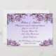 Las lilas son el tema de esta invitación de la cena del ensayo del boda. El frente ofrece aerosoles rosados y de color de malva de la lila en un fondo púrpura. La parte posterior tiene más flores. Modifique el texto para requisitos particulares para su ocasión especial.