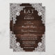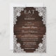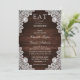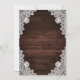 Complemente su rústico país, o fiesta de bodas en el granero con estas elegantes invitaciones rústicas a la boda, con encaje floral blanco sobre un fondo de madera de granero. Artículos de juego disponibles para acompañar estas invitaciones caseras rústicas de moda.
