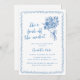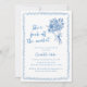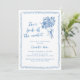 Celebra a la novia que está recién salida del mercado con esta invitación a ducharse de novias. Con sus fachadas floridas de colores azules y pintadas a mano, este moderno diseño capta el encanto de un mercado rústico con un toque romántico y artístico. Perfecto para una sincera ducha de novias llena de amor y flores frescas - hazme saber si necesitas ayuda para personalizar!