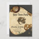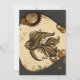 La maravilla mecánica del pez vapor del océano. El estilo steampunk presenta detalles intrincados en negro y oro. El pez está rodeado de engranajes y burbujas, contrastando con un fondo de pergamino envejecido y texturado. Las esquinas de la imagen están enmarcadas con materiales y esferas oscuros, metálicos, perforados. La estética general es una mezcla de elementos mecánicos y orgánicos, creando un ambiente de fantasía.
