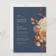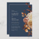 La Marina Cae En Una Invitación De Boda. Esta elegante invitación a la boda incluye naranja quemado con acuarela pintada a mano y hojas de terracota, dahlias crema y beige, y hermosos rosas de color rojizo con un fondo azul marino. La parte posterior de incluye texto para agregar los detalles de su boda. Encontrar elementos coincidentes en la colección de Bodas de la Marina Blue Autumn Romance.