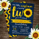 Estas lindas invitaciones a los girasoles son perfectas para cualquiera que celebre un segundo cumpleaños esta primavera o verano. El diseño presenta un girasol brillante sobre un fondo azul marino moderno con un texto de plantilla fácil de personalizar.