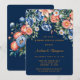 Un ilustracion acuático de un aroma de peonía brillante en azul marino y naranja. El ramo consiste en peonías con grandes flores redondas y hojas verdes profundas. El fondo es azul marino. Las invitaciones coincidentes y los suministros de boda están disponibles en este conjunto de colecciones