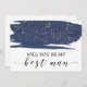Esta acuarela marina y dorada será mi mejor tarjeta masculina es perfecta para una elegante boda. Este diseño abstracto de noche estrellada presenta un pincel dramático de acuarela azul marino con un hermoso purpurina de oro falso. Nota: Este diseño no tiene purpurina de oro real. Es un gráfico de alta calidad hecho para parecerse al brillo dorado.