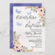 ¿Usted está buscando la invitación de la fiesta de bienvenida al bebé de un muchacho de la acuarela? Las características del este del dulce diseño de la acuarela un azul púrpura sobre todo poner crema y caliente colorearon el arreglo floral y tres mariposas azules calientes de la acuarela. El fondo es una imagen explorada del papel de la acuarela. Todo el texto en la invitación es editable. Esta acuarela floral y la invitación de la fiesta de bienvenida al bebé del muchacho de las mariposas está listas para ser personalizado. El diseño similar está también disponible para un chica.