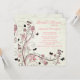 Esta invitación a la ducha matrimonial 5.25x5.25 cuadrada tiene un suave fondo color crema con algunos remolinos rosados y negros. A la izquierda, hay una moda de flores abstractas de rosa rosa y rosa negro de color rosa y negro, y unas mariposas voladoras. A la derecha, puede personalizar fácilmente la información de su fiesta.