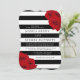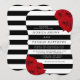 La moderna colección de bodas de lujo de moda cuenta con un fondo clásico de rayas blancas y negras, acentuado por hermosas rosas rojas rubíes. Estas invitaciones son fáciles de personalizar y harán la invitación perfecta para cualquier boda, ducha de novia, fiesta de cumpleaños, celebración de compromiso o cualquier otra ocasión especial.