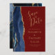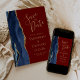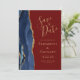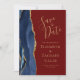Esta elegante y moderna tarjeta de fecha guarda una barra acuática azul marino bordeada por un falso purpurina de oro. Personalizar fácilmente el texto de color dorado sobre un fondo rojo borgoña. El reverso presenta un diseño de agate azul marino y oro a juego.