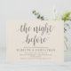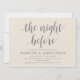 Caligrafía rústica moderna, esquema de gris oscuro y crema, tarjeta de invitación para la cena de ensayo de boda (con título de la tarjeta: la noche antes). Es perfecto para celebrar su cena de ensayo de boda, antes de su mejor día. Agregue sus detalles.