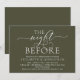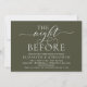 Caligrafía Romántica Moderna, Letra Blanca, Fondo Verde Oliva, Tarjeta de Invitación a la Cena de Ensayo de Boda (con título de la tarjeta: la noche anterior). Es perfecta para la celebración de la cena de ensayo de su boda, antes de su mejor día. Agregue sus detalles en fuente / letra negra a juego.
