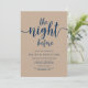 La noche anterior, el diseño de escritura Rustic Navy Blue, tarjeta Brown Kraft.