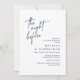 Anuncie su gusto después con estilo con nuestra elegante y moderna tarjeta de invitación a la celebración del ensayo boda con el diseño del retrato azul marino (La noche antes). Es ideal para las parejas que han decidido celebrar la noche anterior a su gran día. Con un diseño sofisticado pero lúdico, esta invitación seguramente marcará el tono para un evento inolvidable. La tarjeta de invitación incluye un moderno diseño de escritura romántico, añadiendo un toque de elegancia eterna a tu celebración. Diseñado por TeeshaDerrick