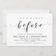 Anuncie su gusto después con estilo con nuestro moderno diseño temático (La noche antes) boda de la carta de invitación a la celebración del ensayo. Es ideal para las parejas que han decidido celebrar la noche anterior a su gran día. Con un diseño sofisticado pero lúdico, esta invitación seguramente marcará el tono para un evento inolvidable. La tarjeta de invitación cuenta con un diseño de escritura moderno y elegante, añadiendo un toque de elegancia intemporal a su celebración. Diseñado por TeeshaDerrick