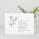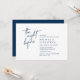 Anuncie su gusto después con estilo con nuestra moderna tarjeta de invitación a la celebración del ensayo boda de diseño temático de la Marina Azul (La noche antes). Es ideal para las parejas que han decidido celebrar la noche anterior a su gran día. Con un diseño sofisticado pero lúdico, esta invitación seguramente marcará el tono para un evento inolvidable. La tarjeta de invitación incluye un moderno diseño de escritura romántico, añadiendo un toque de elegancia eterna a tu celebración. Diseñado por TeeshaDerrick