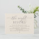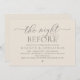 Anuncie su gusto después con estilo con nuestra moderna tarjeta de invitación a la celebración del ensayo boda de diseño de temática gris oscuro (La noche antes). Es ideal para las parejas que han decidido celebrar la noche anterior a su gran día. Con un diseño sofisticado pero lúdico, esta invitación seguramente marcará el tono para un evento inolvidable. La tarjeta de invitación incluye un moderno diseño de escritura romántico, añadiendo un toque de elegancia eterna a tu celebración. Diseñado por TeeshaDerrick