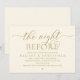 Anuncie su feliz siempre después con estilo con nuestra moderna tarjeta de invitación a la celebración del ensayo del boda de diseño de temática dorada amarilla (La noche antes). Es ideal para las parejas que han decidido celebrar la noche anterior a su gran día. Con un diseño sofisticado pero lúdico, esta invitación seguramente marcará el tono para un evento inolvidable. La tarjeta de invitación incluye un moderno diseño de escritura romántico, añadiendo un toque de elegancia eterna a tu celebración. Diseñado por TeeshaDerrick