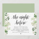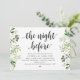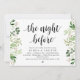 Tarjeta de invitación temática Modern Rustic Greenery Eucalyptus,, Black Script (con título de tarjeta: la noche anterior). Es perfecta para la celebración de su cena de ensayo de boda, antes de su mejor día. Agregue sus detalles en fuente / letra negra coincidente.