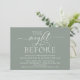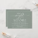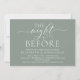 Caligrafía Romántica Moderna, Letra Blanca, Fondo Verde Salvia, Tarjeta de Invitación para Cena de Ensayo de Boda (con título de tarjeta: la noche anterior). Es perfecto para la celebración de su cena de ensayo de boda, antes de su mejor día. Agregue sus detalles en fuente / letra negra a juego.